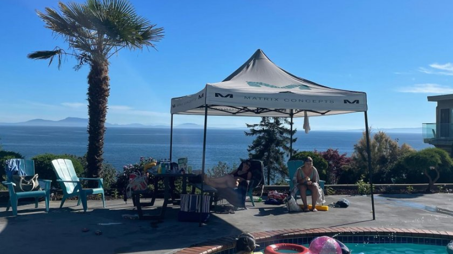 На снимките се виждат прекрасни гледки от морето край Уайт Рок, където е отседнала Линда с една от дъщерите си. Градът граничи със залива Semiahmoo на юг и е заобиколен от три страни от Съри.