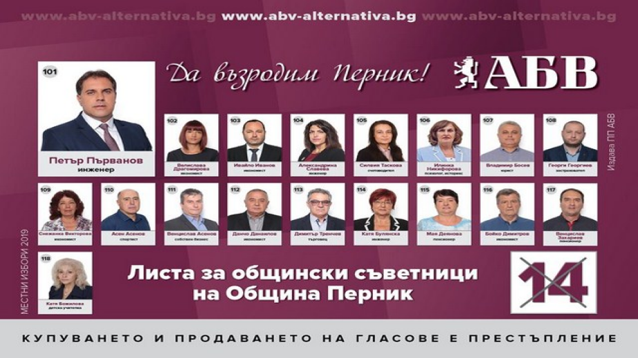 Много от кандидатите за общински съветници с № 14 имат управленски и политически опит. Те ще използват своя професионализъм, за да се възроди Перник.