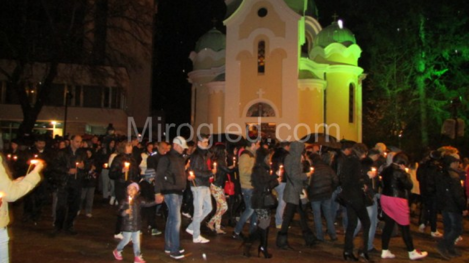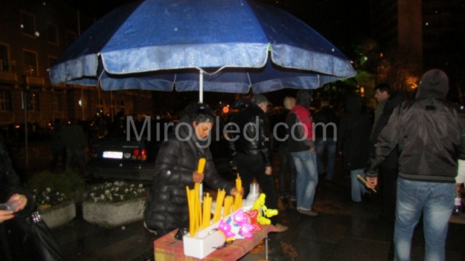 Лошото време обаче не успя да прогони мургавите търговци, които продаваха свещи. Те бяха разпънали огромни чадъри. Цените вървяха както всяка година по 50 ст. за малка свещ с чаша до 1 лев за голяма. Освен духовните символи обаче мургавите търговци предлага също и светещи уши. Не липсваха и перничани, които се бяха закичили с тях.