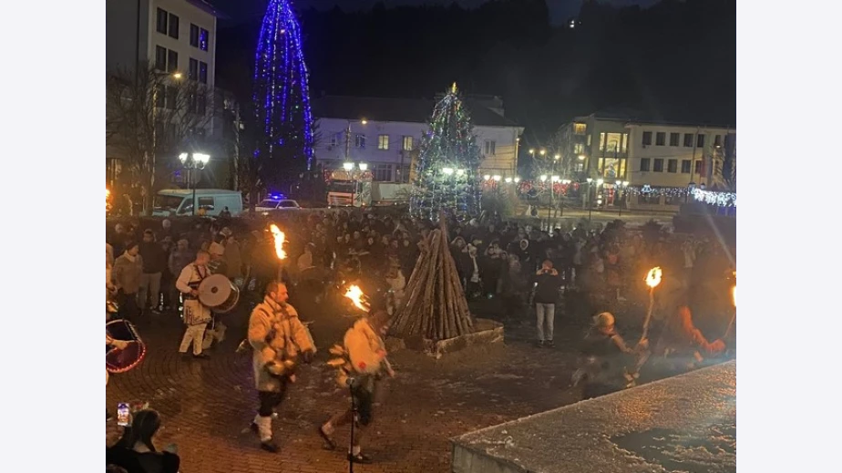 За първи път лумна сурвакарският огън в Трън. Маскирани с тежки чанове изгониха злото от региона.