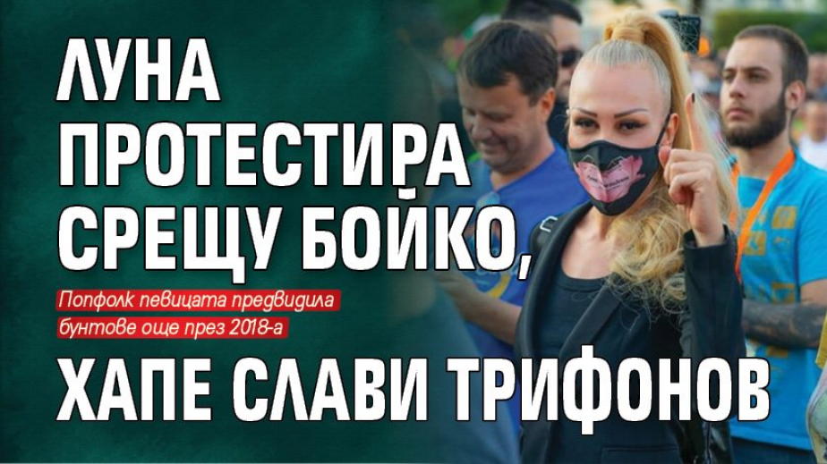 Попфолк изпълнителката с най-екстравагантните идеи, включително да става президент - Луна, се появи на протеста в София с искане за свалянето на правителството. Потребители на социалните мрежи пуснаха нейни снимки от демонстрацията, но се усъмниха дали русокосата дама е действително изпълнителката на "Бягайте, крачета", защото един от символните й атрибути отсъства, а именно... емблематичните гърди.