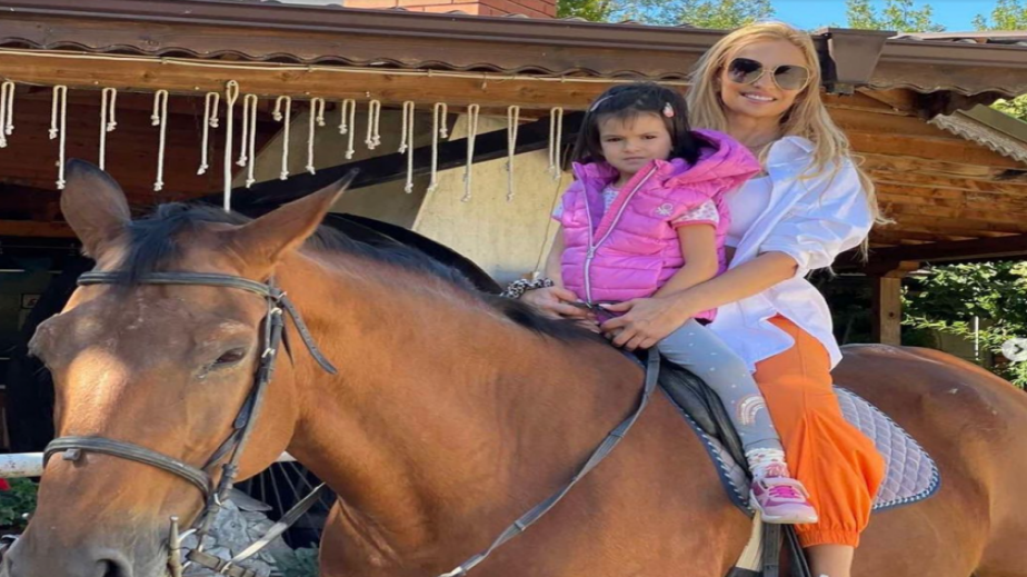 Тя сподели в социалната мрежа кадър от първия си урок по конен спорт и отбеляза, че след него се чувства заредена с положителни емоции и обеща да продължи заниманията си. На една от снимките тя позира заедно със своята внучка Малина, която изглежда също е увлечена по конната езда.