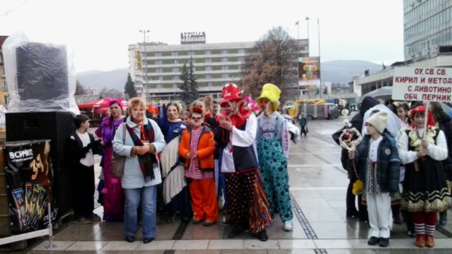 В дефилето на децата се включиха 19 училища от Перник. Малчуганите бяха маскирани със страшни ликове, кожени костюми и носеха звънци на талиите си.