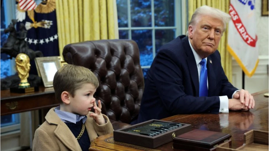 Белият дом сподели видео на тримата в Овалния кабинет, подчертавайки "Малкия Екс", носещ кафяво палто и "готина верига", както го описа баща му. /Източник: Днес.бг