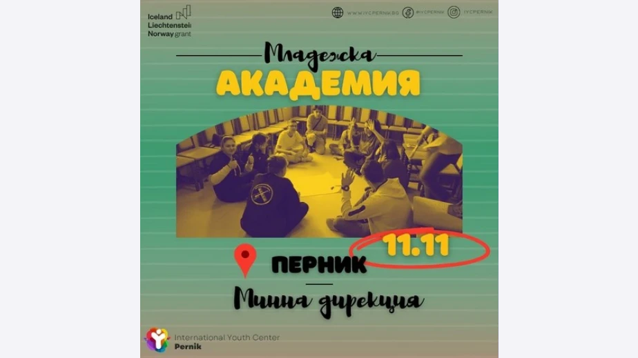 Младежка академия ще се състои на 11 ноември от 10:00 до 16:00 ч. в Тържествената зала на Минната дирекция в Перник. Организатор е екипът на Международния младежки център (ММЦ), съобщи за БТА Радост Раданова – директор на организацията.