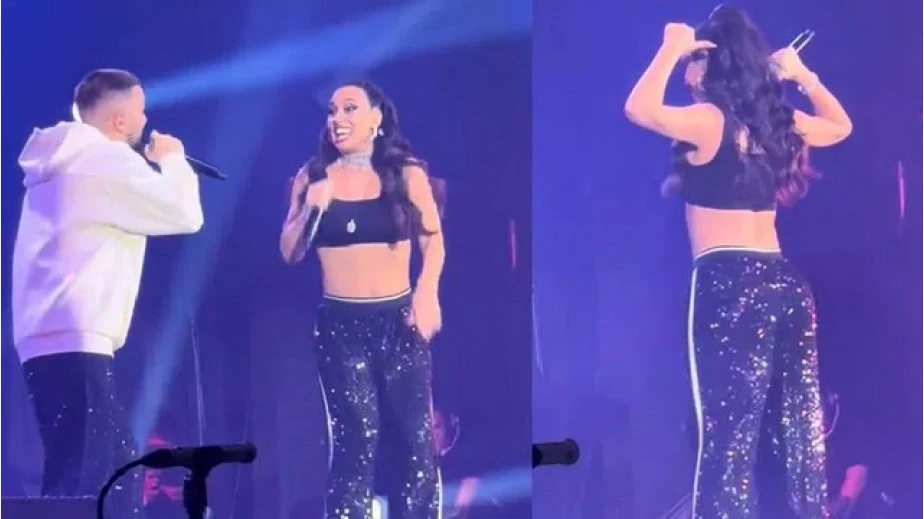 Дуетното им парче "Видимо доволни" прозвуча на живо в "Арена София" на първия от двата концерта на рапърът Кристиян Талев, по-известен като Криско. Изпълнителката се появи на сцената по брукатен анцунг, което някак не й отиваше, имайки предвид, че гони 50-те. Критици са на мнение, че е могло брюнетката да се накипри с някоя секси рокличка, вместо спортна долница, която по-подхожда на тийнейджърка. Но дотук критиките не спряха. Във вихъра на общото им парче, певицата така завъртя дупара, че дори и в попфолка биха се засрамили.