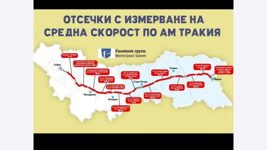 Около 50 участъка по магистрали и скоростни пътища ще бъдат оборудвани с камери за отчитане на средна скорост. Първите участъци по магистрала „Тракия“, където ще се осъществява контрол на средната скорост, са: