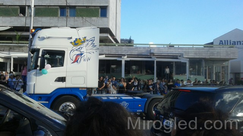 Бял изрисуван камион окичен с балони събра погледите на перничани. Сканията бе прилежно приведена в параден вид, а силните му клаксони заглушаваха останалите автомобили.