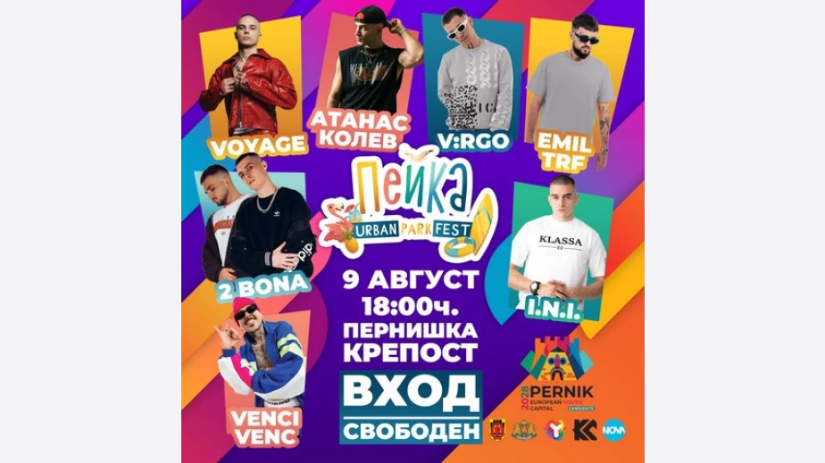 Най-силното издание на Парк фест Пейка в Перник издига вайба до ново ниво тази събота – 9 август. Събитието, което е 5 поред, е с вход свободен и ще се проведе на пернишката крепост. Началото е от 18 ч.