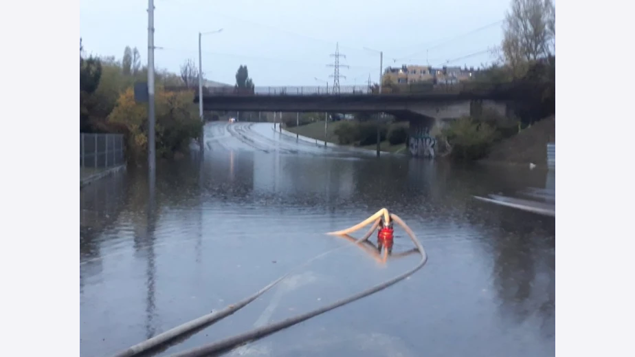 Причината е сериозно наводнение по бул. „Асен Йорданов“ преди „Шипченски проход“. Аварийните екипи и пожарната работят на място.