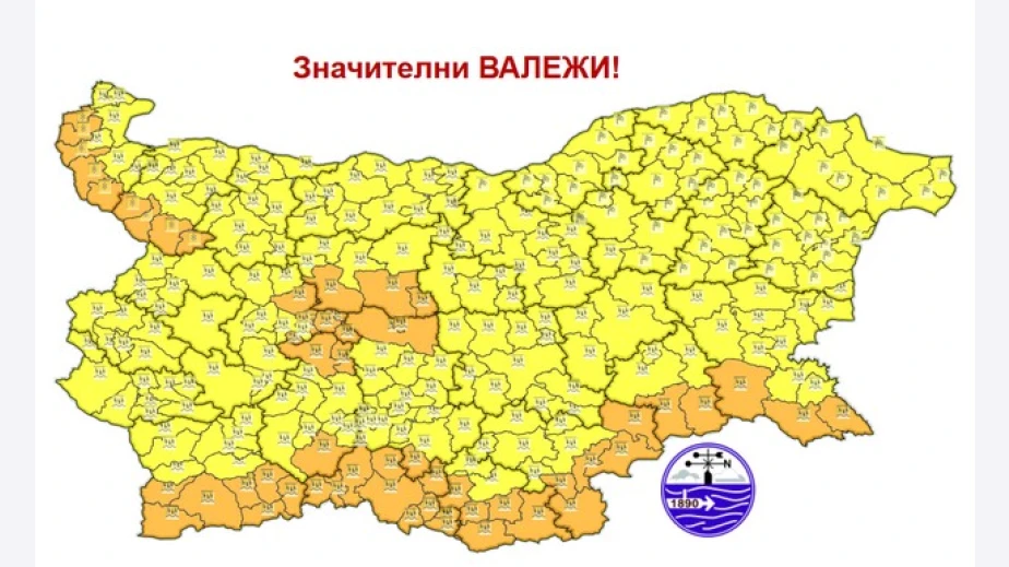 Жълт код за значителни валежи е обявен за днес в Перинк област. Според прогнозата на НИМХ сумарните количества ще са между 25 и 35 mm. С понижението на температурите дъждът ще премине в сняг и ще започне да се образува снежна покривка.
