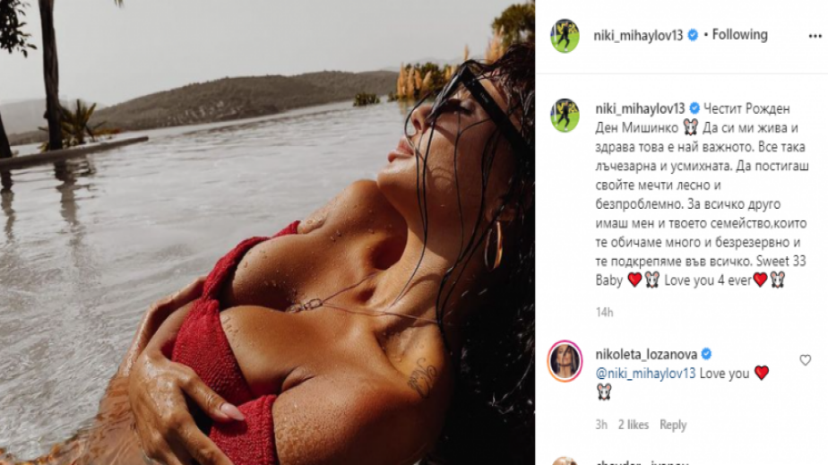 "Честит рожден ден, Мишинко. Да си ми жива и здрава, това е най-важното. Все така лъчезарна и усмихната. Да постигаш своите мечти лесно и безпроблемно. За всичко друго имаш мен и твоето семейство, които те обичаме много и безрезервно, и те подкрепяме във всичко.“, написа спортистът в социалните мрежи, видя Lupa.bg