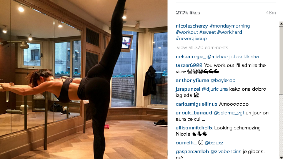 Приятелката на най-добрия ни тенисист Григор Димитров - поп иконата Никол Шерцингер, за пореден път зарадва феновете си с апетитните си форми.