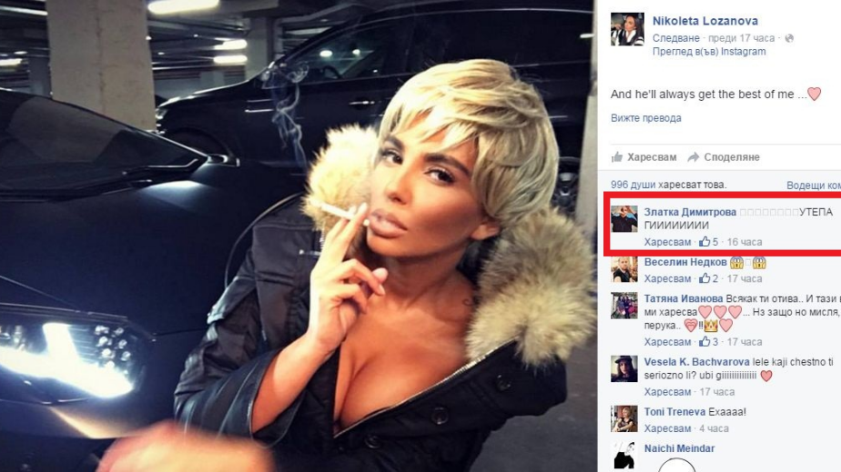 Коментарите не закъсняха, като типично в свой стил Златка Димитрова избухна на стената на Лозанова с едно мощно: УТЕПА ГИ!/HotArena.net