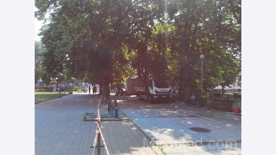 Това не е единственият ремонт. От днес започва и подмяна на старите плочки на алеята пред Двореца на културата които бяха единствените неподменени. Те ще бъдат заменени с павета като в останалата част на района. На мястото работи тежка техника, а алеята е оградена с ленти. Поставени са и табели да не се преминава до приключване на строително-монтажните дейности.