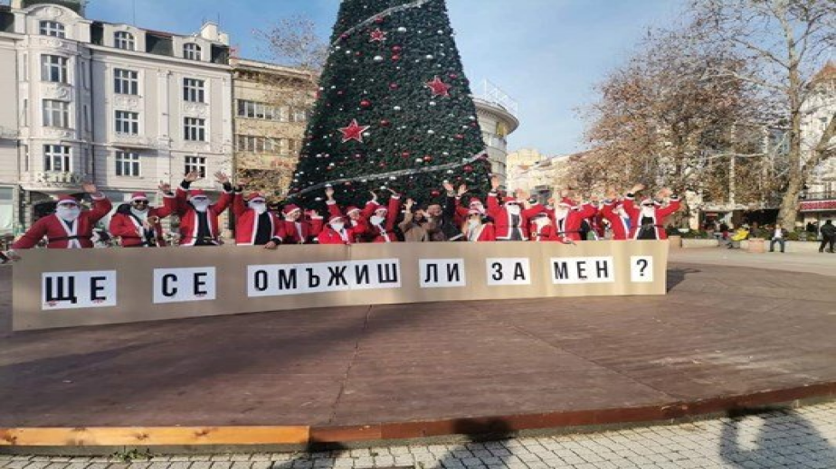 За да участва в изненадата, групата на Дядо-Коледовците чака повече от половин час на площада, като старателно се криеше от очите на влюбената двойка. Междувременно се снимаха с дечица и раздаваха близалки на послушните./Източник: Lupa.bg