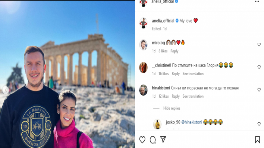Фолк певицата Анелия не спира да се хвали с мъжа до себе си. Тя публикува снимки в личния си инстаграм профил с бизнесмена Любомир Захаринов, когото успя да разведе.