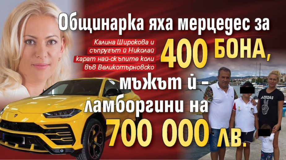 Съпругата му Калина, която е зам.-председател на Общинския съвет, а от известно време държи най-голямата птицеферма за кокошки носачки край Дебелец, пък кара поръчков мерцедес „AMG MS”, оценяван за близо 400 хил. лв.