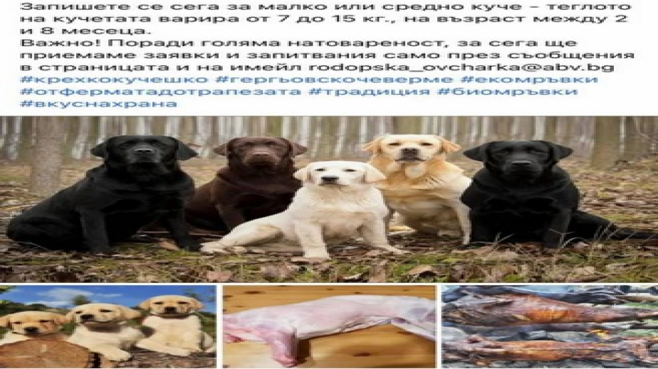 Вместо агнешко, за празниците се предлага кучешко месо. За това сигнализират стотици граждани, които са попаднали на страницата “Родопска овчарка” в социалната мрежа фейсбук, пишат от "Трафикнюз".