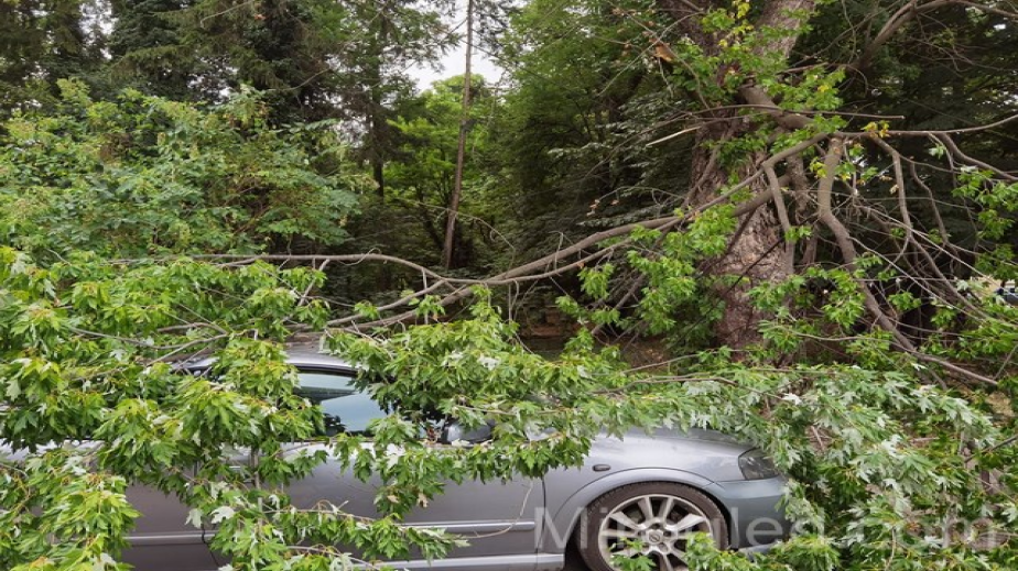Огромен клон падна върху паркирана кола. Автомобилът е паркиран зад бившия ресторант „Секвоя“ в улицата към градския парк.