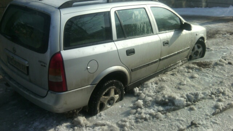 „От някъде натича вода в нея и е заледена. Като попадне автомобил в дупката, не може сам да излезе. Вчера вадихме две коли, а днес преди обяд още една“, обясниха жители на района.
