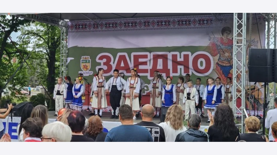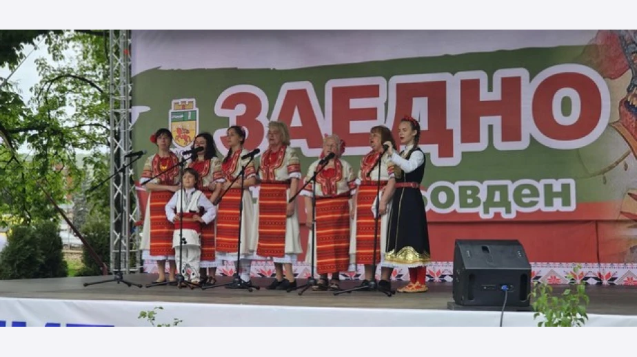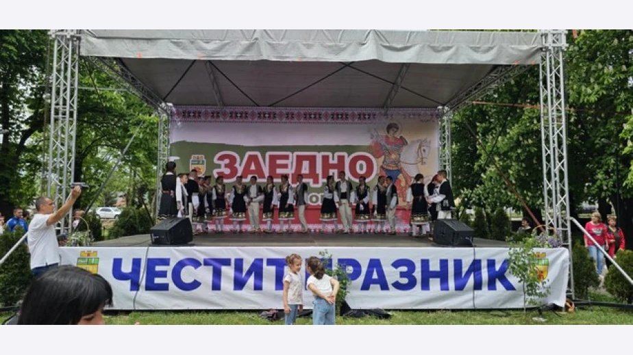 Огромно знаме носиха радомирци, облечени с носии, на шествието на празника „Заедно за Гергьовден“, който се проведе днес в Радомир. Събитието събра българския дух, традиции, музика, танци и занаятчийство в едно.