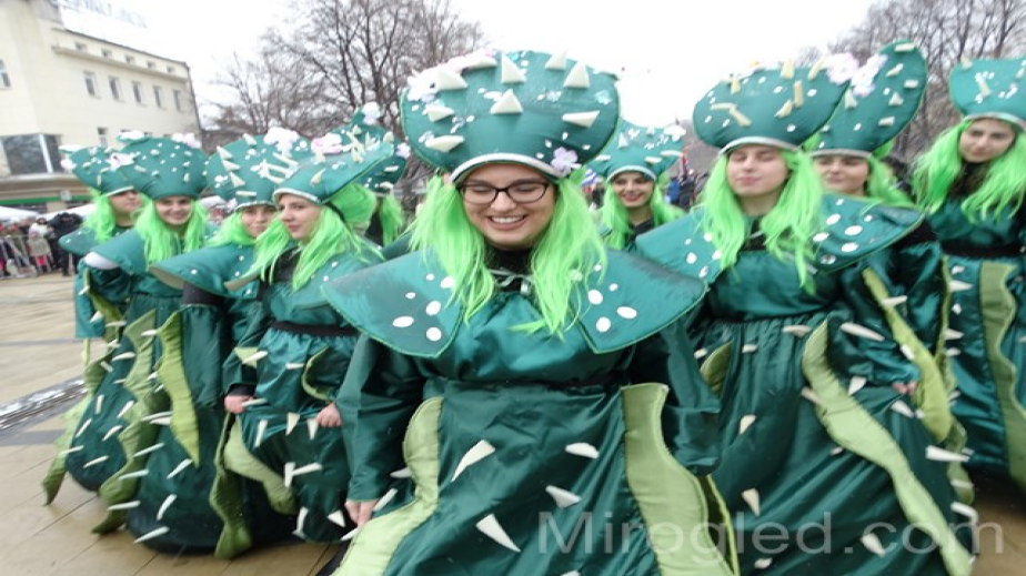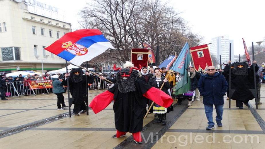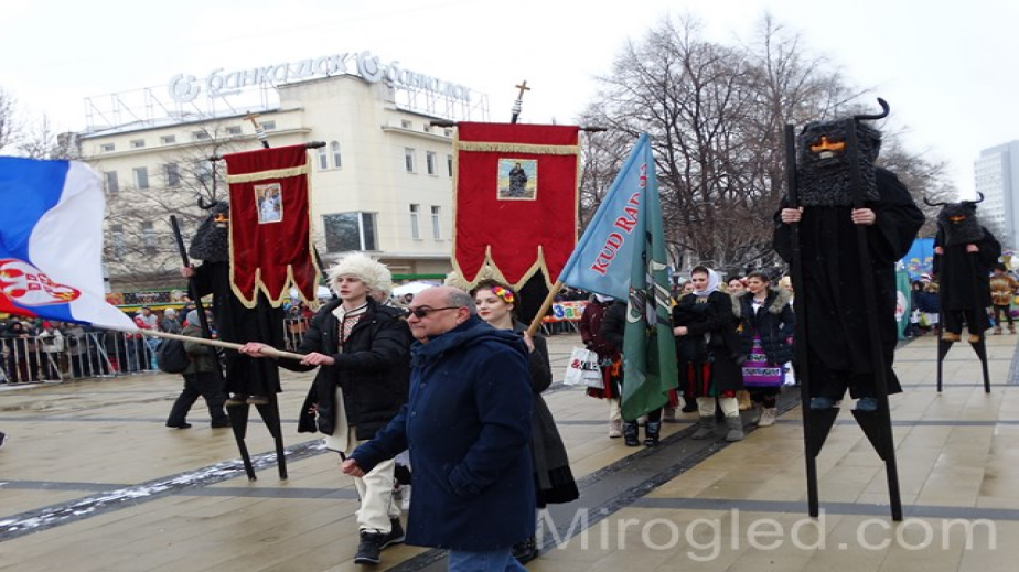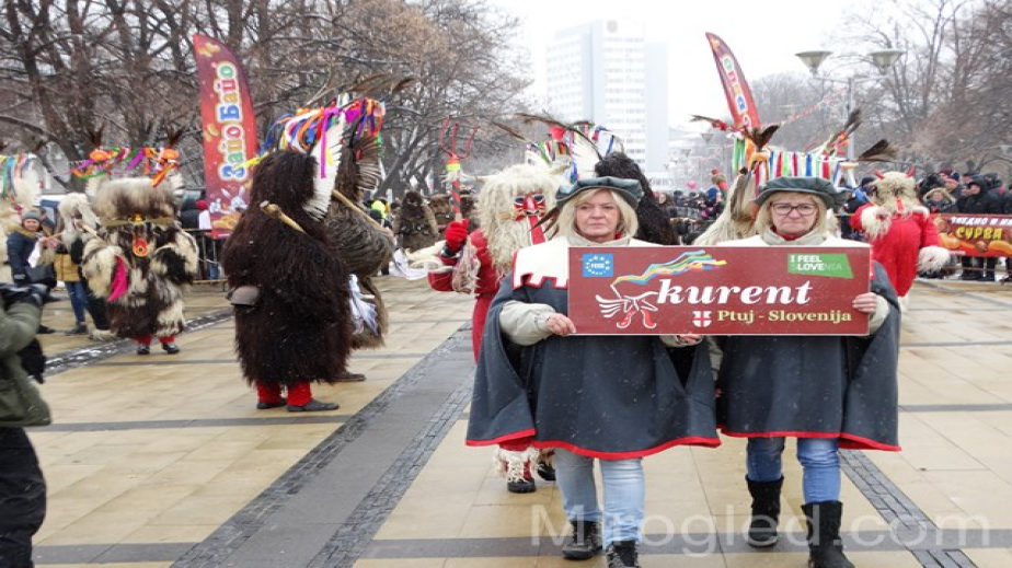 Малко преди обяд на площада в Перник започнаха да прииждат множество хора, за да наблюдават дефилето на гостите от зад граница. Шествието поведе групата от Бранещи – Румъния. Перничани ги разпознават по пъстрите украси, които носят на главите си. След тях на площада се изявиха групи от Македония, Сърбия, Гърция, Славения и Турция.