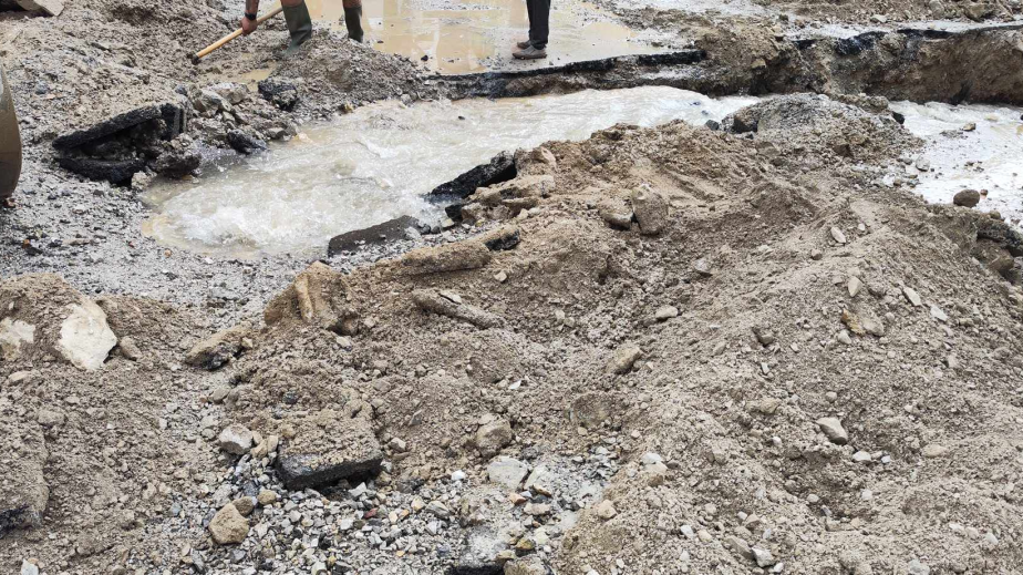 При извършване на ремонтни работи от външна фирма изпълнител днес в следобедните часове е скъсан главен водопровод от водопреносната мрежа на ул."Петко Каравелов" в центъра на Перник.