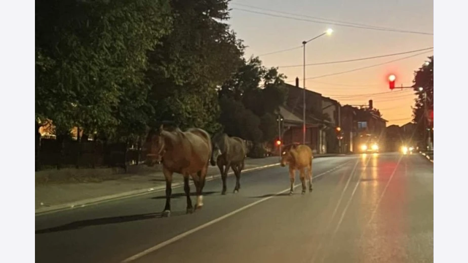 Пореден случай на свободно разхождащи се коне в Перник. Животните се движели по пътното платно на „Софийско шосе“, съобщиха шофьори.