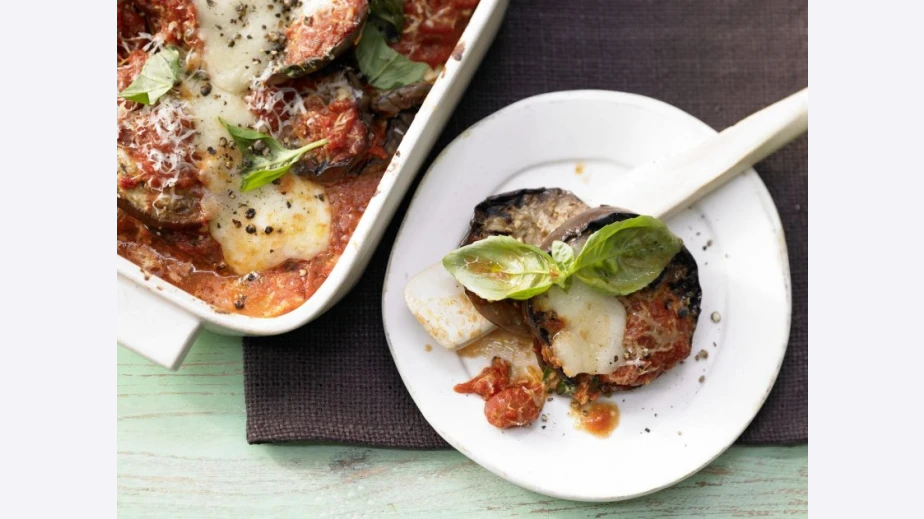 Намазнява се тавичка. Разстила се слой доматен сос на дъното. Подреждат се патладжани. Поръсват се с пармезан. Покриват се с доматен сос. Поръсват се листенца босилек. Продължава в същата последователност на пластове.