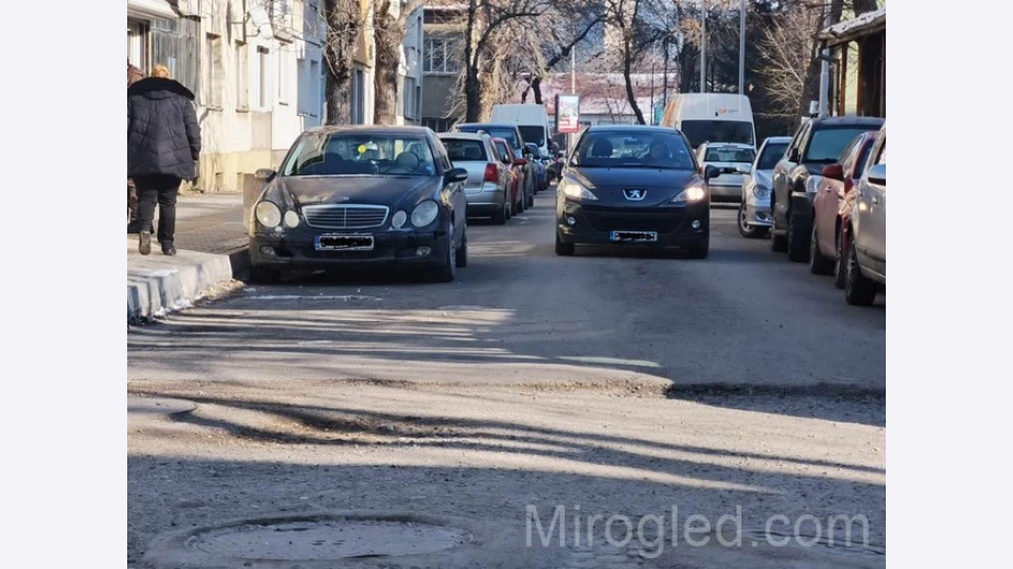 Според тях на входа на улицата е поставен знак, че е в ремонт. Въпреки това коли влизат. На входа пък от дни стоял паркиран автомобил, заради който разминаването било невъзможно и често водачи се налагало да връщат на зад в кръговото кръстовище.