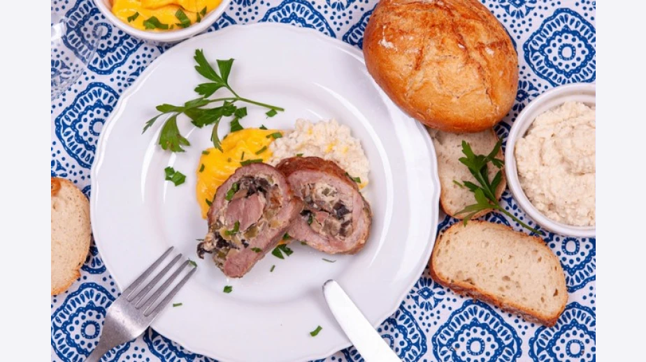 Първата стъпка от рецептата за пълнен свински врат е изборът и подготовката на свинския врат. Залагайте винаги на охладено свинско месо с доказан произход, каквото е свинското месо от витрината на МЕТРО. Изберете голямо парче свински врат, което разрежете по дължина, за да стане по-дълго и по-широко. Може да приготвите рецептата и с вратни пържоли еднакви по размер и дебелина, които подредите плътно една до друга. Осолете месото от двете страни, поръсете с черен пипер и поставете върху стреч фолио. Сложете стреч фолио и върху месото, и начукайте внимателно с чук за месо, за да се получи тънка основа, подходяща за завиване.