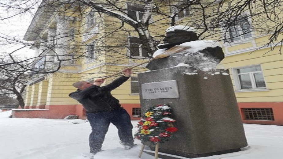 Перничанинът Милен Петров почисти паметника на Христо Ботав от снега. Монументът изглежда почти забравен два дни преди Националния празник.