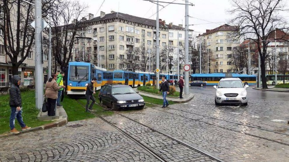 По залесените релси на Руски паметник в София, които са първите у нас. успешни опити за минаване правят десетки автомобили въпреки забранителните знаци.