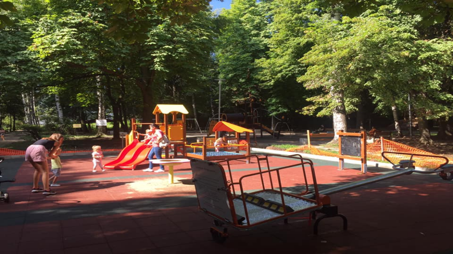 Площадката се намира до къщичката на Баба Яга в централния градски парк.