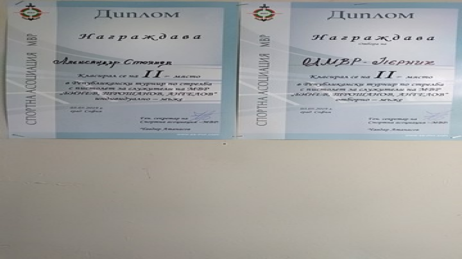 В Републиканския турнир по стрелба „Бинев, Трошанов, Ангелов“ взеха участие 20 полицейски отбора от страната и столицата. ОДМВР – Перник премери сили с два отбора – мъже и жени. Александър Стоянов, Мартин Малинов и Кирил Кирилов завоюваха Второ място отборно, а Александър Стоянов стана Втори индивидуално. Дамите в състав Александра Атанасова и Мария Вълчанова също се представиха добре въпреки, че не попаднаха в челната тройка.