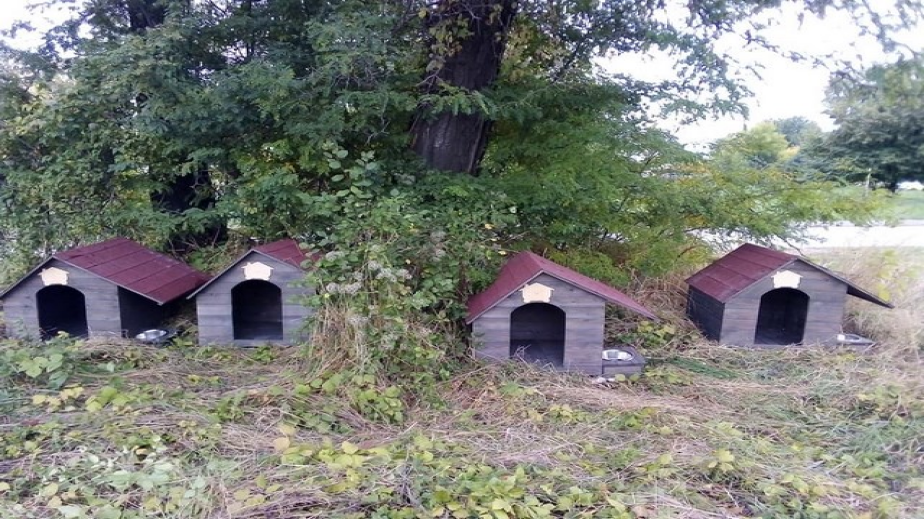 Над 30 нови домове очакват четириногите си обитатели. Всяка къщичка е номерирана, надписана и съоръжена с метална купа за храна.