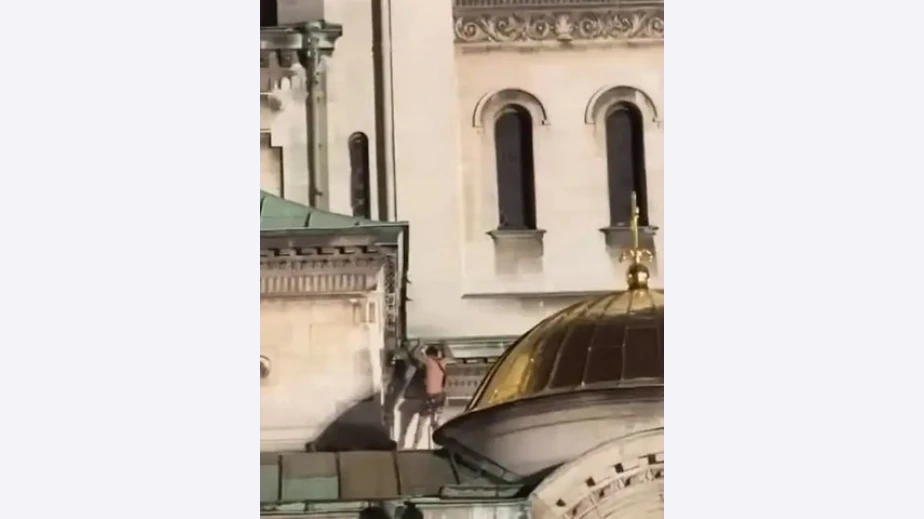 Абсурдна случка се е разиграла в нощна София в началото на седмицата. Полугол мъж се е покатерил върху покрива на патриаршеската катедрала "Св. Александър Невски". Това станало пред погледа на шашнати столичани, които в този момент били на жълтите павета.