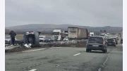 Влекач премина през мантинелите на магистрала „Струма“ и удари кола