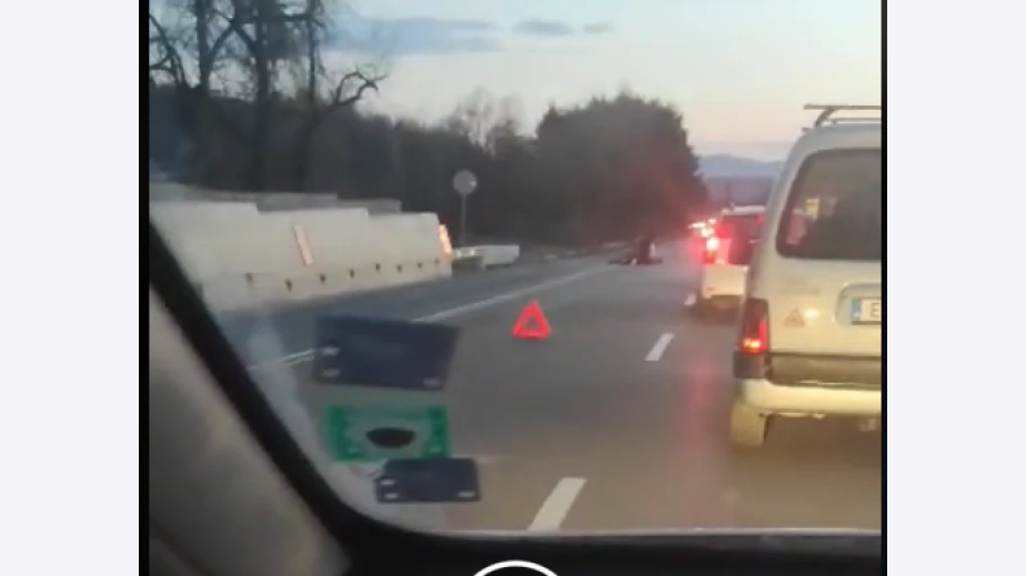 Конят е прегазен и лежи на лентата в посока София за идващите от миньорския град. Цялото движение се осъществява в дясната пътна лента. Произшествието е станало точно срещу бензиностанция Авия.
