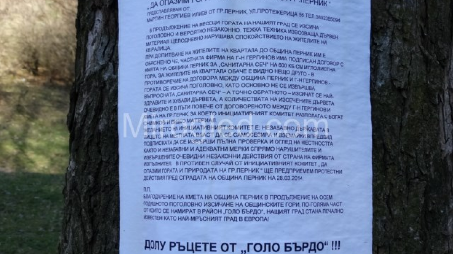 Временно е прекратена сечта на Голо Бърдо в Перник заради недоволството на хората. Това обяви управител на „Общински гори” Любомир Минев.