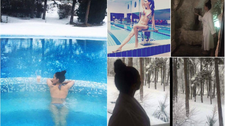 Певицата изкара кратка ваканция е един от зимните ни курорти, където редуваше плацикането в джакузи с въргаляне по бански в снега.