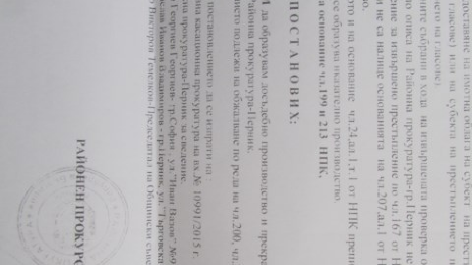 Районната прокуратура в Перник е постановила отказ да образува досъдебно производство по нашумелия запис „Просто си платихме вота“. Това съобщи лидерът на БСП в Перник Ненко Темелков.