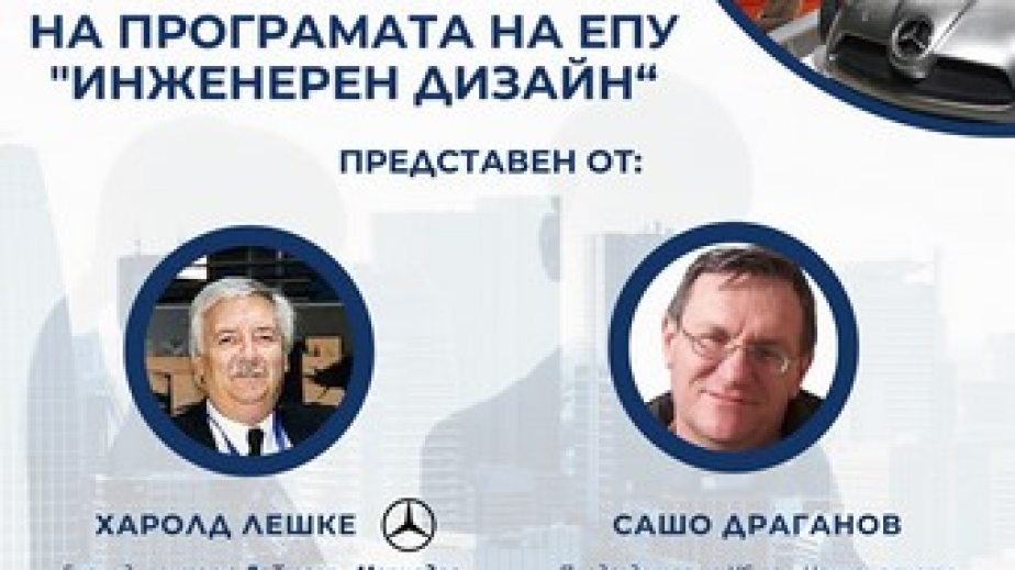 Проф. Харалд Лешке, директор на отдел „Корпоративен и иновативен дизайн“ на Даймлер-Мерцедес, изнася лекция „Авангарден дизайн на автомобили“ на събитие на 20 юни 2023 г. Събитието е от 17:30 до 19:30 ч. в тържествената зала на Минна дирекция, гр. Перник.„Авангарден дизайн на автомобили“е в рамките на програмата „Инженерен дизайн“ на Европейския политехнически университет