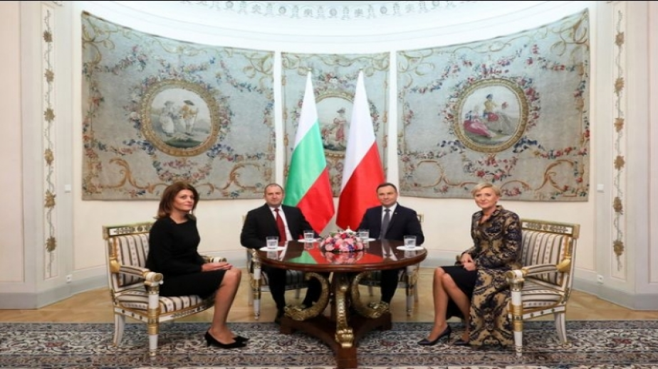 За срещата на съпруга си с полския му колега Анджей Дуда Радева избра права, черна рокля, с дължина до коляното.