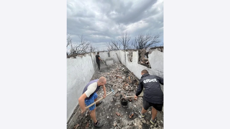 Разчистват изгорелия при големия пожар параклис във Вискяр Планина. Доброволци премахват отпадъците. При пожара от параклиса останаха само голи стени.