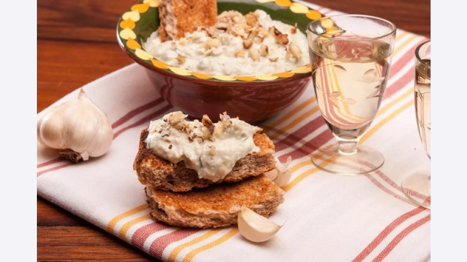 Междувременно почиствате чесъна и начуквате орехи. Сварените тиквички отцеждате много добре от водата. С помощта на блендер пюрирате. Ако нямате блендер може да намачкате тиквички с вилица или преса за картофи, докато получите каша от тиквички.