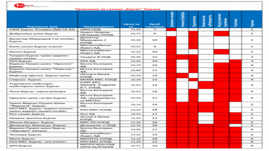 В проучването са включени 25 марки колбаси, съдържащи в наименованието „Бургас“. Закупени са по метода „таен клиент“ от търговската мрежа в страната. Не претендираме за изчерпателност и вероятно съществуват и други подобни салами които не сме открили.