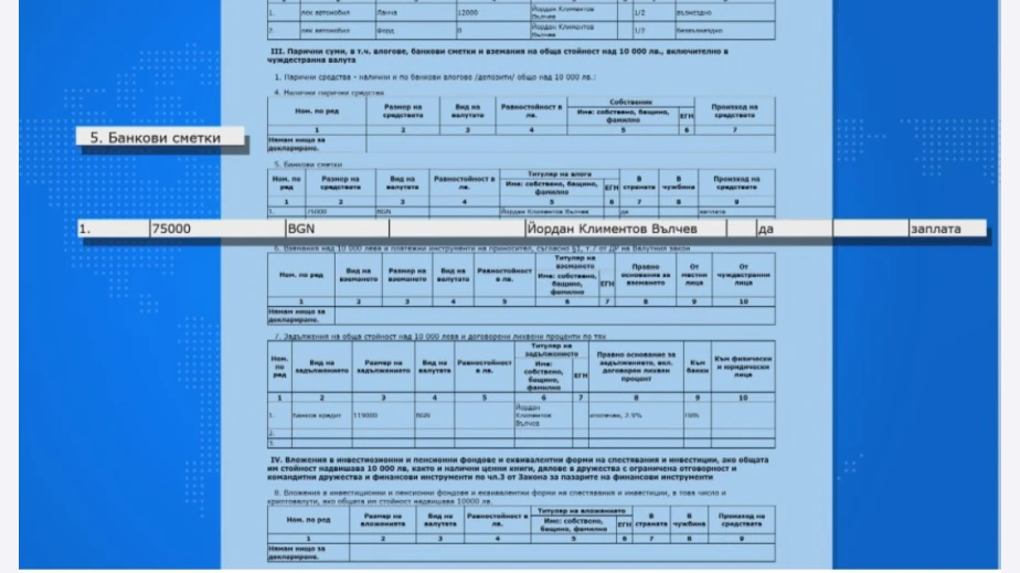 В декларацията си от тази година е посочил, че вече има банкова сметка със 75 000 лева, чийто произход е от заплата.