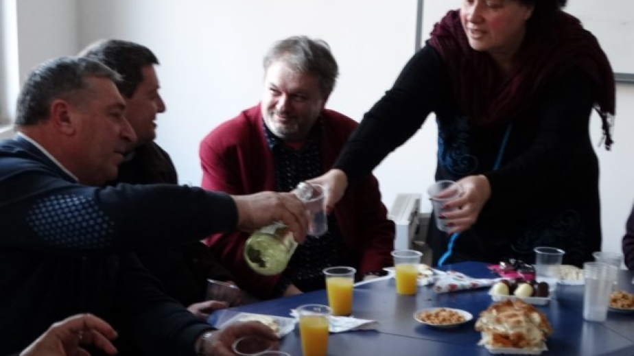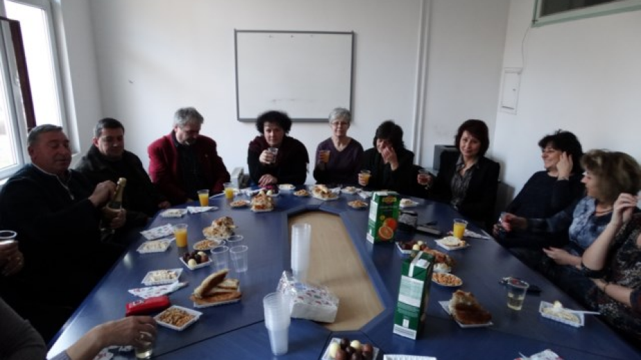 В заседателната зала бе наредена празнична трапеза. С баници, сладкиши, ядки и вино служителите на „Български пощи“ в Перник отпразнуваха края на старата и настъпването на новата година.